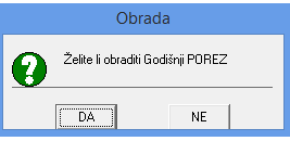c) Treći korak je ponovno u programu „Obrada“ pustiti obračun samo ovaj put stisnuti na „NE“ za godišnji obračun.