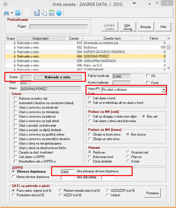 Da bi se godišnji porez mogao obračunati, obavezno je prijaviti vrstu zarade ‘Godišnji obračun poreza’ (Imate ju vjerojatno od prošle godine pa je potrebno samo mapirati s IP1 obrascem, a ako ju nemate prijavljuje se u programu „Vrste zarada“) Takva zarada mora imati slijedeće karakteristike: